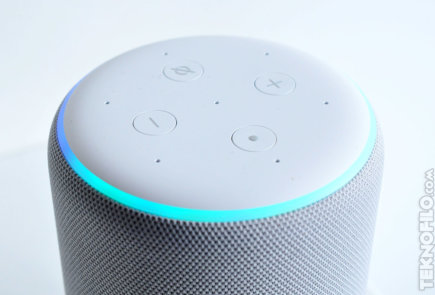 Alrededor del borde superior encontramos un anillo de LEDs que se iluminan de color azul cuando Alexa ha escuchado su nombre o mientras habla, de color amarillo cuando tenemos algún mensaje o notificación pendiente de escuchar, de color verde cuando tenemos una llamada entrante y de color rojo cuando hemos silenciado los micrófonos.