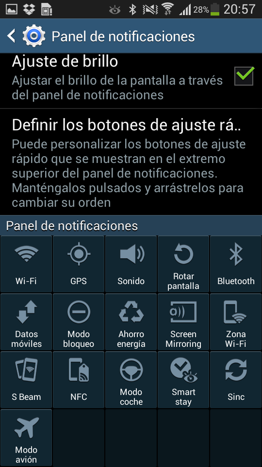 - Panel desplegable del Galaxy S4 Mini