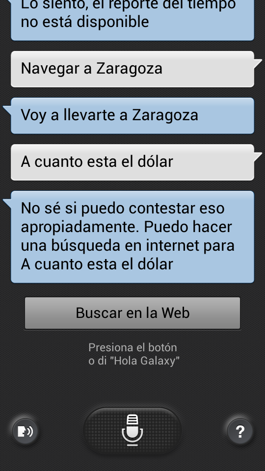 El sistema es capaz de traducir frases entre diversos idiomas, y el resultado es bastante bueno. Ofrece la posibilidad de introducir el texto mediante el teclado convencional o mediante dictado. S Voice también puede sintetizar voz para pronunciar la frase traducida en el idioma elegido. La calidad del sintetizador de voz es muy buena, especialmente si decidimos descargar los archivos de síntesis de alta calidad (80 MB para español).