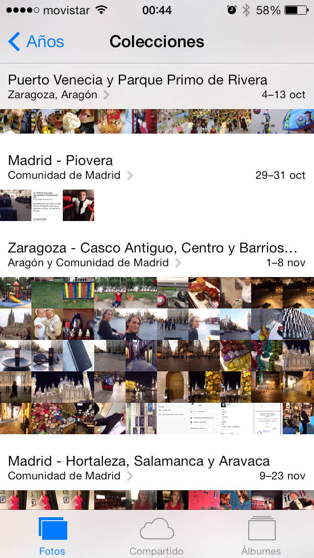 La aplicación Fotos clasifica las fotos tomadas por el teléfono por fecha y ubicación, creando automáticamente colecciones, y ofrece la posibilidad de ver todas las imágenes sobre un mapa.
