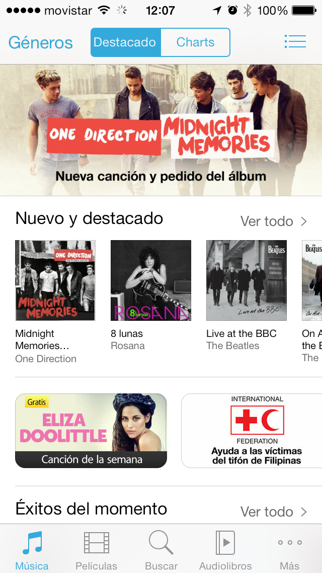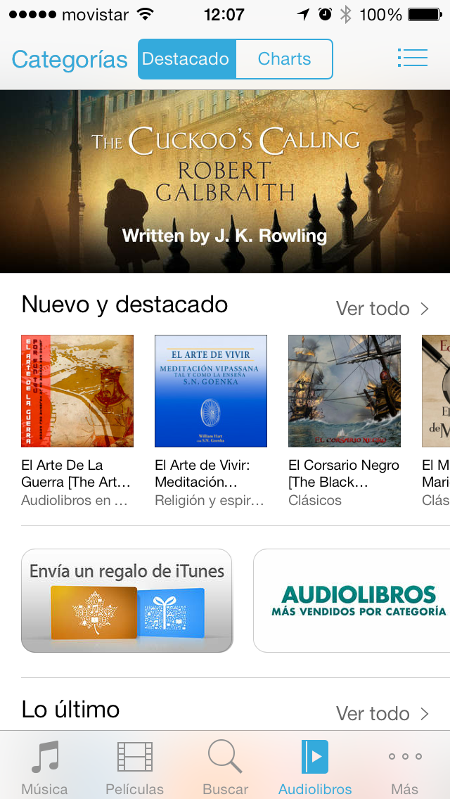 La tienda iTunes Store tiene una estructura y funcionamiento similar a App Store, solo que está enfocada a la adquisición de contenidos: música, películas, audiolibros y tonos. En las opciones de iTunes Store y App Store podemos indicar que se descarguen automáticamente las actualizaciones en segundo plano.