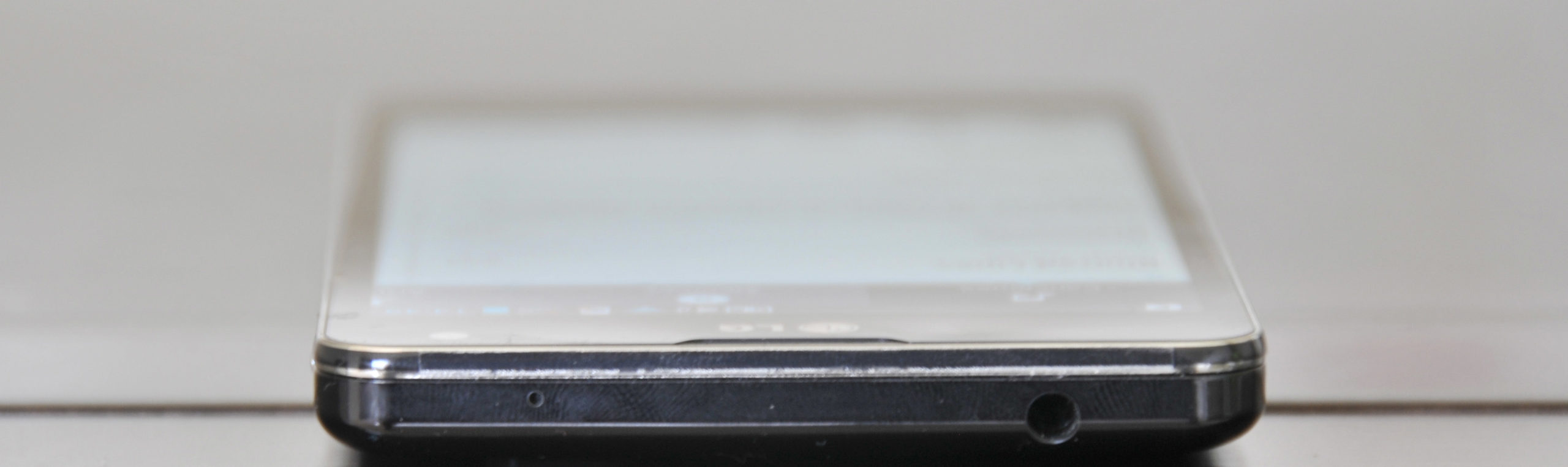 La parte superior del teléfono únicamente cuenta con el conector de auriculares y un micrófono secundario y la parte inferior contiene el conector micro-USB para la carga del teléfono y la conexión a un ordenador, así como el micrófono principal.