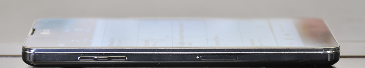 El lateral izquierdo contiene el control del volumen, que es sencillo de apretar al tacto aunque no resulta fácil distinguir los botones de subida/bajada fácilmente dado que ambos están unidos. Si pulsamos en la unión de ambos botones, se abre QuickMemo, una utilidad para tomar notas rápidas sobre la pantalla, como veremos más adelante.