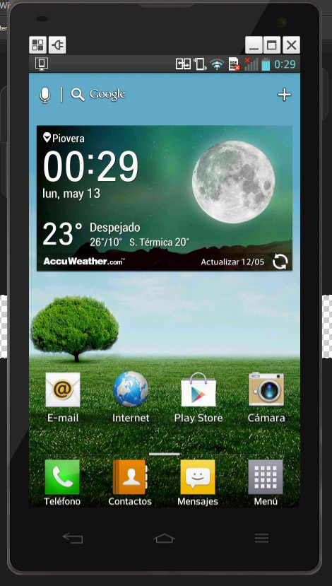 En cuanto a widgets, el LG Optimus G apenas incorpora widgets propios y estos no son demasiado interesantes. Por destacar alguno de ellos, el widget que aparece en la pantalla principal con la hora y previsión meteorológica es visualmente bastante atractivo.