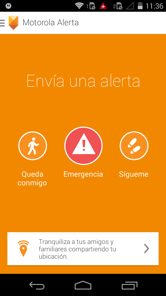 Motorola Alerta permite avisar a contactos predeterminados si te encuentras en una situación peligrosa y proporcionarles información relevante como la ubicación en la que te encuentras. También es posible automatizar el envío de una alerta cuando el teléfono se encuentra en un lugar concreto, permitiendo así que el teléfono avisa cuando un niño llega al colegio.