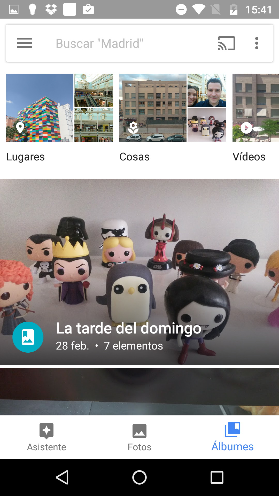 En el apartado «cosas» podemos ver fotografías organizadas según elementos que ha identificado Google en las fotos. Por ejemplo, podemos ver fotos donde aparezcan «coches.»