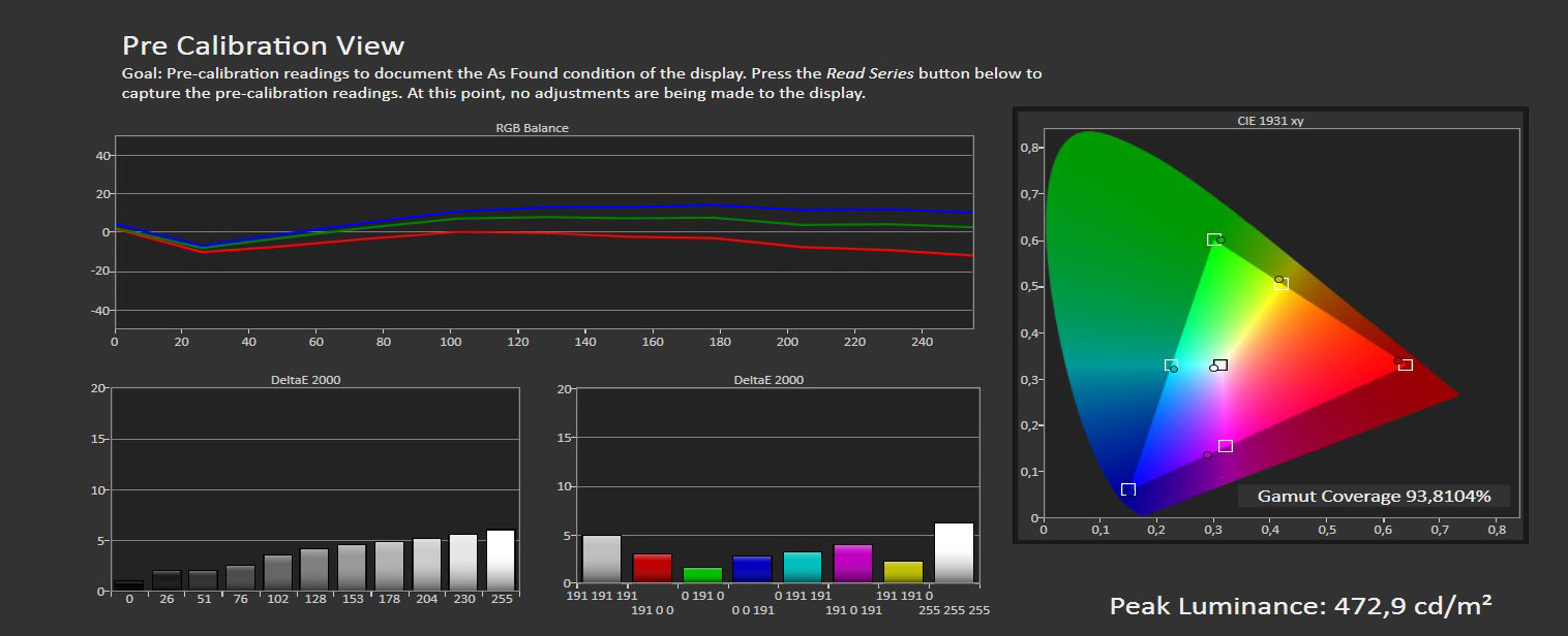 El valor de gamma es bueno, 2.24, y el color negro es bastante profundo (0,362 nits), lo que implica que el contraste es correcto, alrededor de 1304:1.