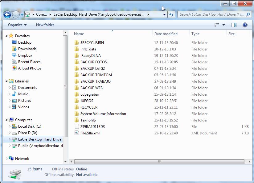 My Book Live Duo permite acceso a los ficheros a través de diversos protocolos: