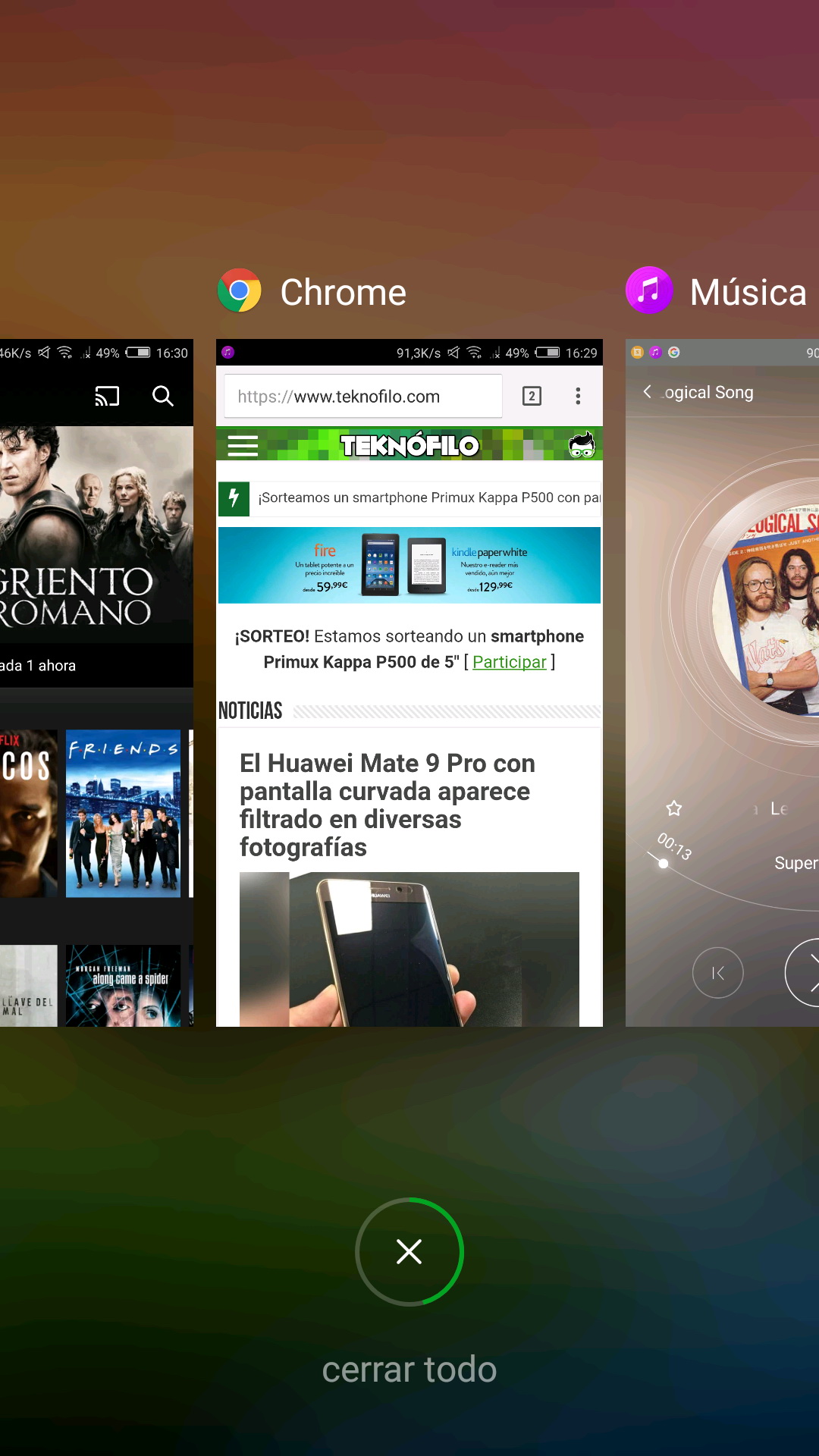 - Cerrar todas las aplicaciones deslizando el dedo desde el borde de la pantalla varias veces hacia arriba y hacia abajo