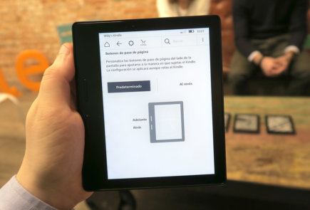 El uso de botones físicos resulta más cómodo que presionar el marco táctil del Kindle Voyage ya que, como comentamos en nuestro análisis de dicho lector, en ocasiones no registraba correctamente las pulsaciones.