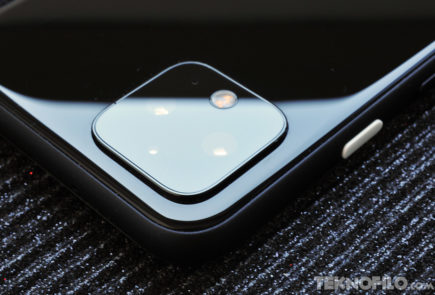 Si nos fijamos en la parte de atrás, el Pixel 4 posee un acabado en cristal con un gran módulo cuadrado de cámara en una esquina. Este módulo se ve bastante grande para albergar solo dos cámaras y hace que, cuando el teléfono está apoyado sobre una mesa, baile ligeramente al pulsar sobre la pantalla.