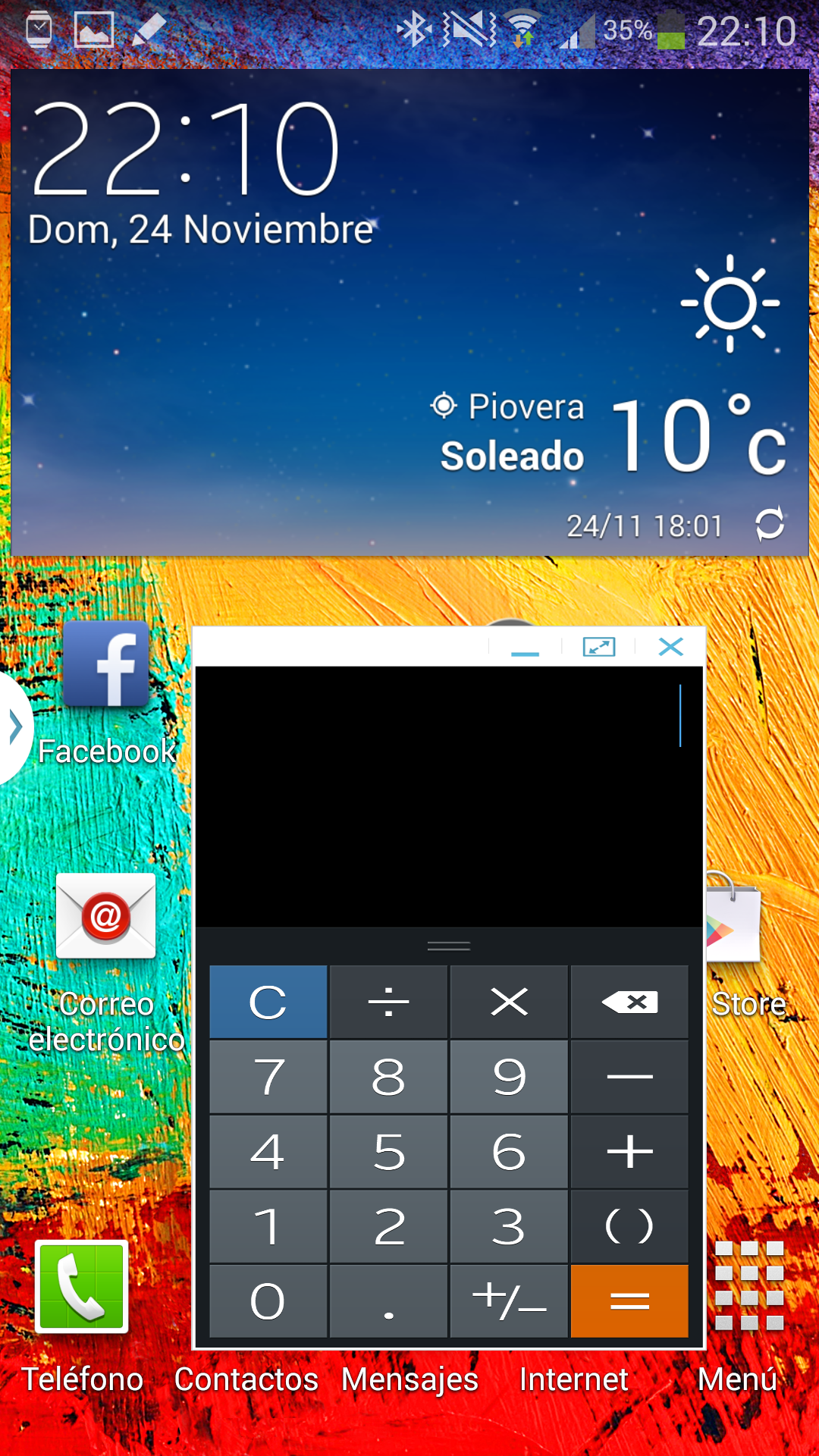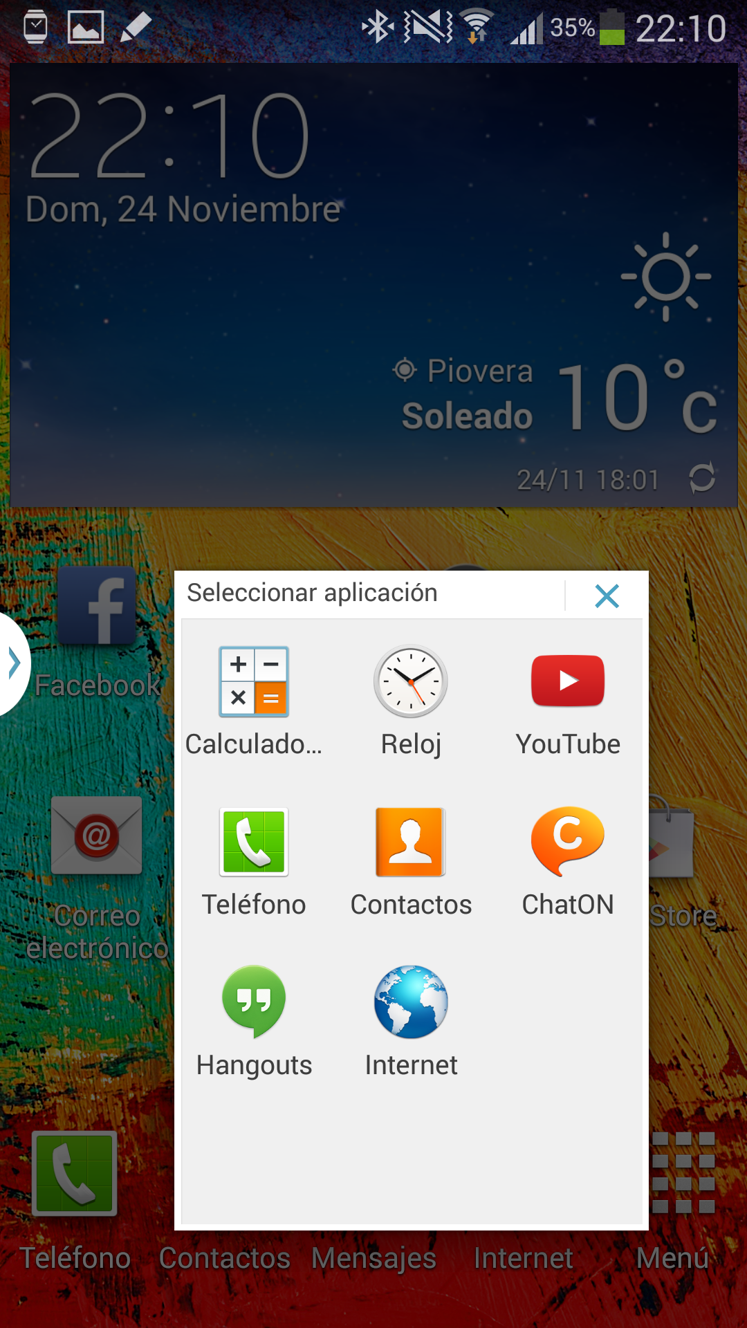 - Multi Window permite dividir la pantalla en dos y ejecutar simultáneamente dos aplicaciones. No todas las aplicaciones están preparadas pero hay un buen número de ellas que sí que lo están: Twitter, GMail, Maps, Chrome, ChatOn, Contactos, Correo Electrónico, Galería, Navegador, E-Mail, Mis Archivos, Música, S Finder, S Note, Scrapbook, Video, Hangouts y YouTube.
