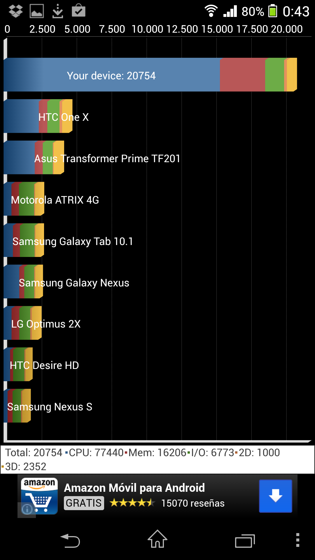 Estos resultados son espectaculares y nos recuerdan a los que obtuvimos al analizar el Sony Xperia Z Ultra y el LG G2, ambos con un hardware muy similar. En la práctica el teléfono se mueve con gran fluidez, tanto a la hora de movernos por el interfaz como durante la ejecución de aplicaciones exigentes.