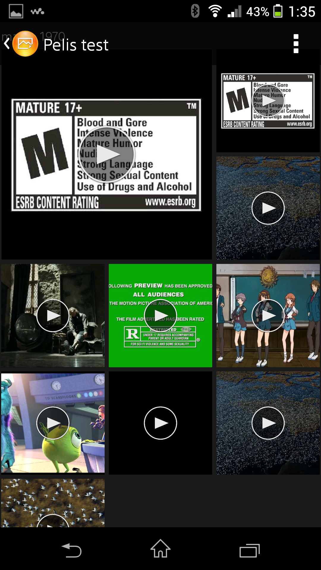 Para comprobar la compatibilidad con diversos formatos de audio y vídeo, hemos sometido al Sony Xperia Z1 a una completa batería de vídeos de prueba (todos ellos de corta duración):