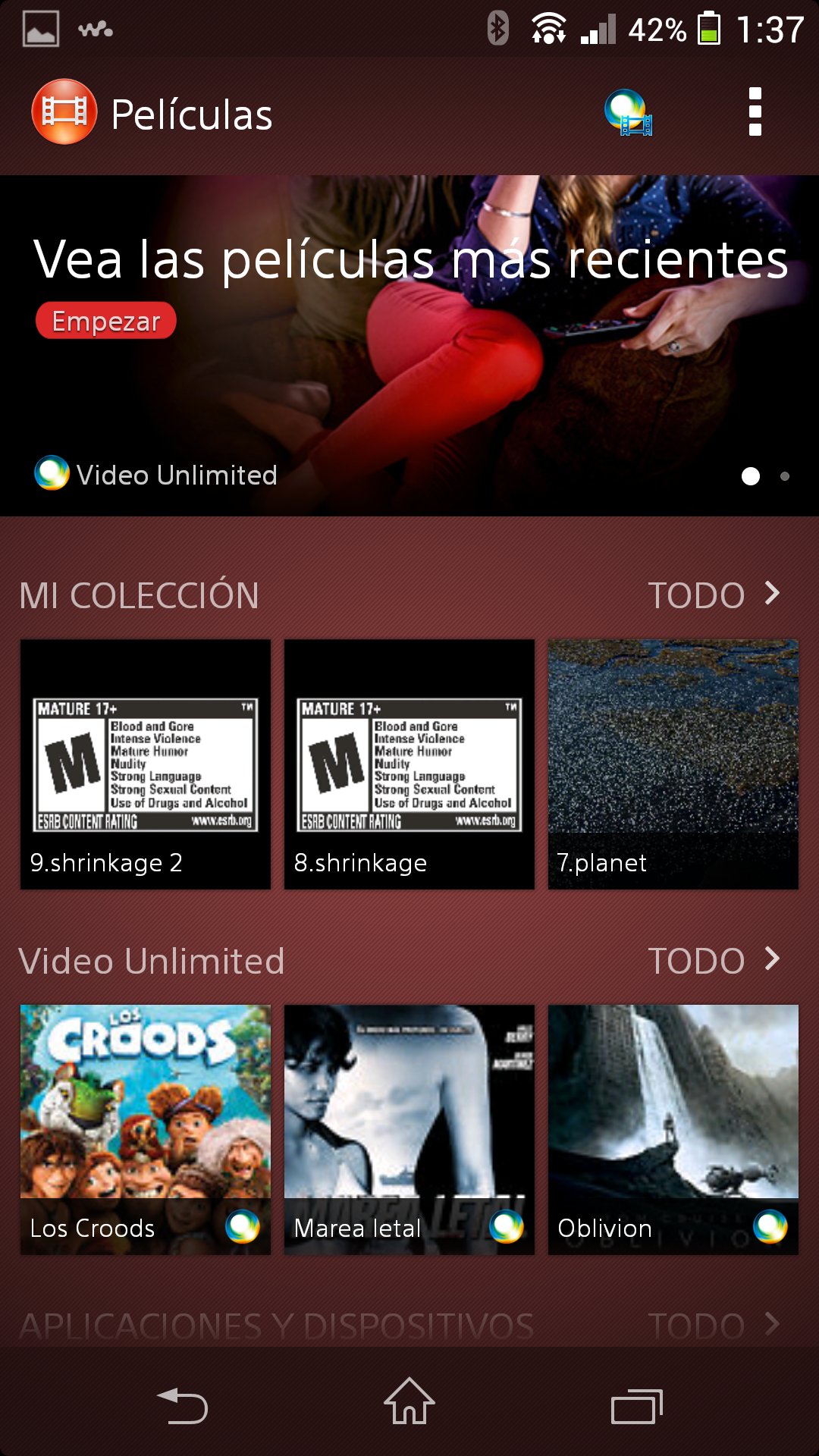 Se integra con el servicio Video Unlimited, que permite alquilar y comprar películas para visionarlas en el teléfono.