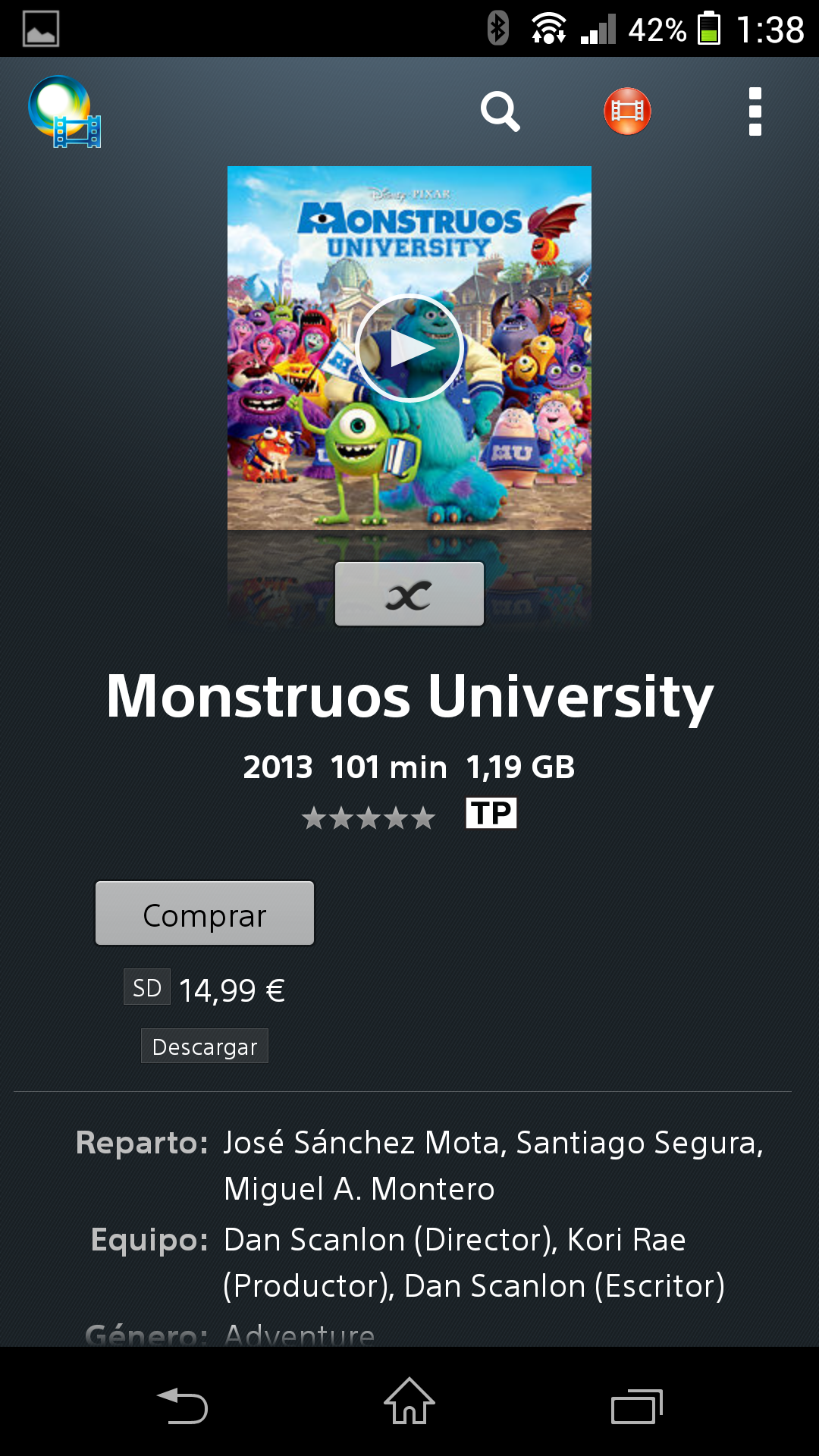 La aplicación Películas es similar a Álbum salvo que está orientada a ficheros de vídeo y es capaz de descargar carátulas e información de las películas de Internet, de forma que muestra las películas y series de una forma que resulta muy atractiva visualmente.