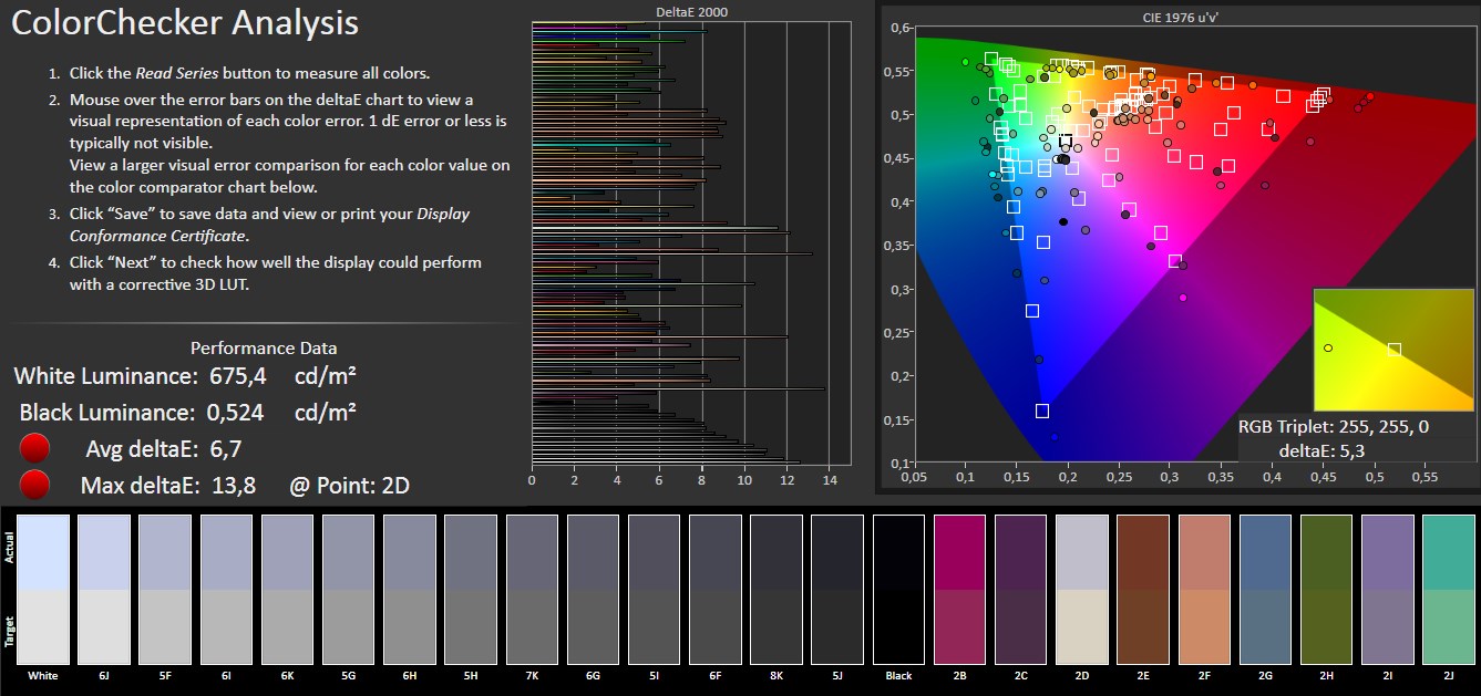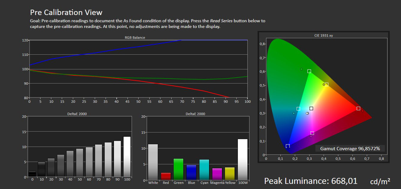 Para analizar la calidad de la pantalla hemos realizado diversas pruebas con el software profesional CalMAN Ultimate y un colorímetro X-Rite i1Display Pro.