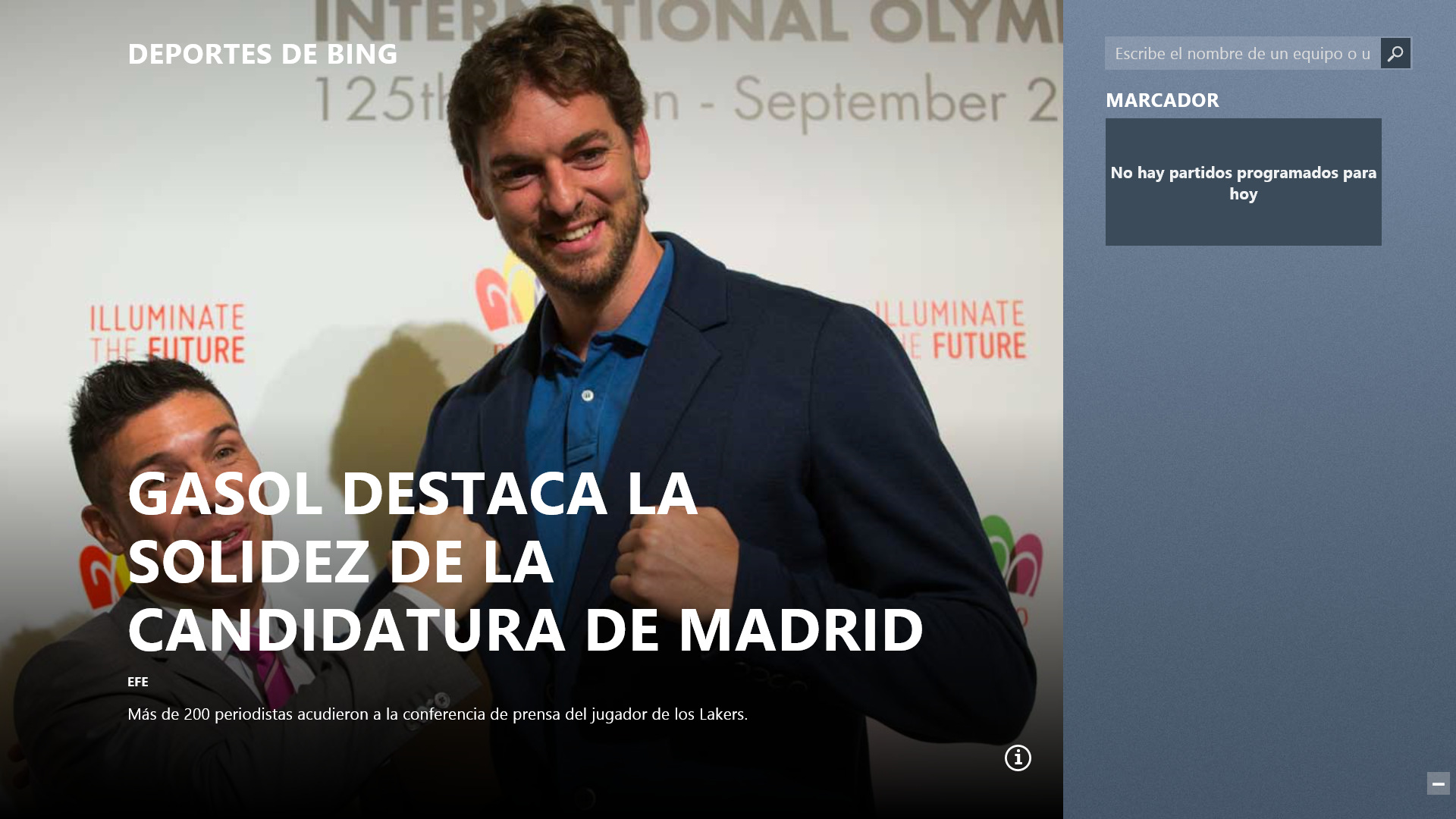 Los amantes de los deportes están de suerte ya que la aplicación Deportes ofrece noticias deportivas en general, información sobre un equipo en concreto, noticias sobre un deporte en particular (La Liga, Formula 1, MotoGP, PGA, NBA, etc.), próximos partidos, vídeos, etc.
