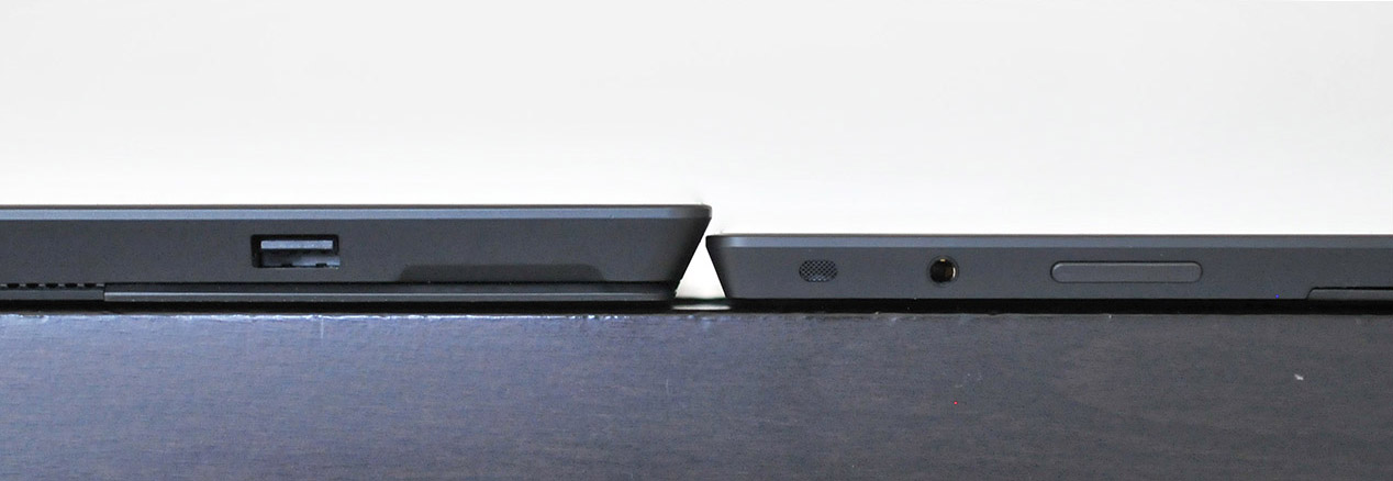 Nos encontramos ante el tablet más grueso y pesado que hayamos analizado hasta la fecha, aunque no podemos olvidar que en realidad estamos evaluando un PC encerrado en un cuerpo de tablet. En la siguiente imagen podemos ver el Surface Pro junto al Surface RT y se aprecia claramente que la diferencia de grosor es considerable.