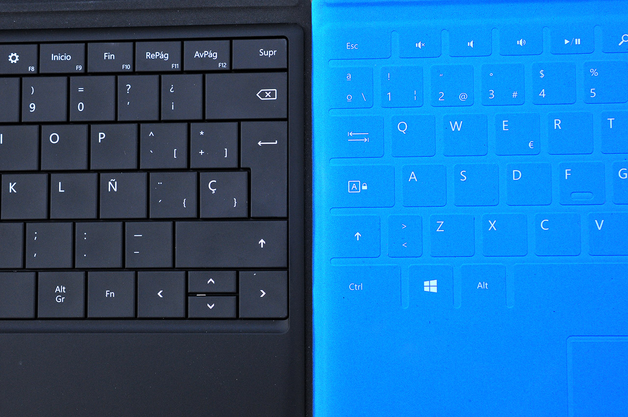 Comenzado por el más básico, el Touch Cover es un teclado completo disponible en cinco colores, aunque en la web de Microsoft España solo se puede adquirir en cian, blanco o negro. Añade 3,25 mm. de grosor y 209 gramos de peso al Surface Pro. Las teclas del Touch Cover apenas sobresalen sino que basta con tocarlas para que se pulsen. También dispone de un touchpad con dos botones.
