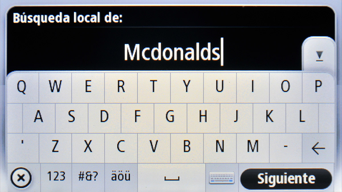 El GO LIVE 1005 no permite una búsqueda libre de puntos de interés sino que es necesario delimitar a priori el ámbito de búsqueda introduciendo una ciudad o código postal, o bien indicar que se desea buscar en las proximidades de la posición actual, del destino o de la ruta.